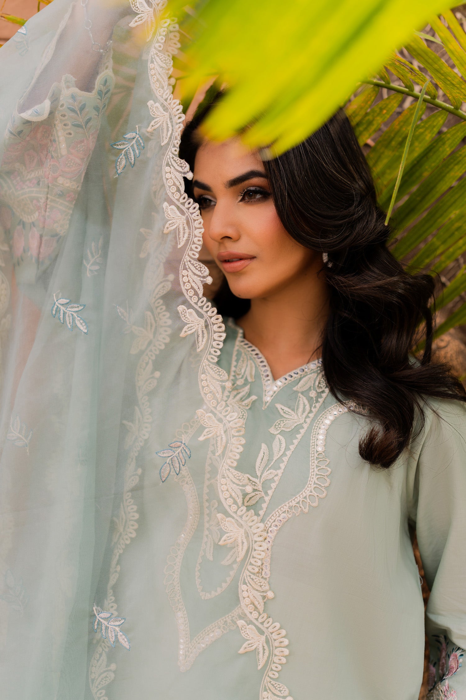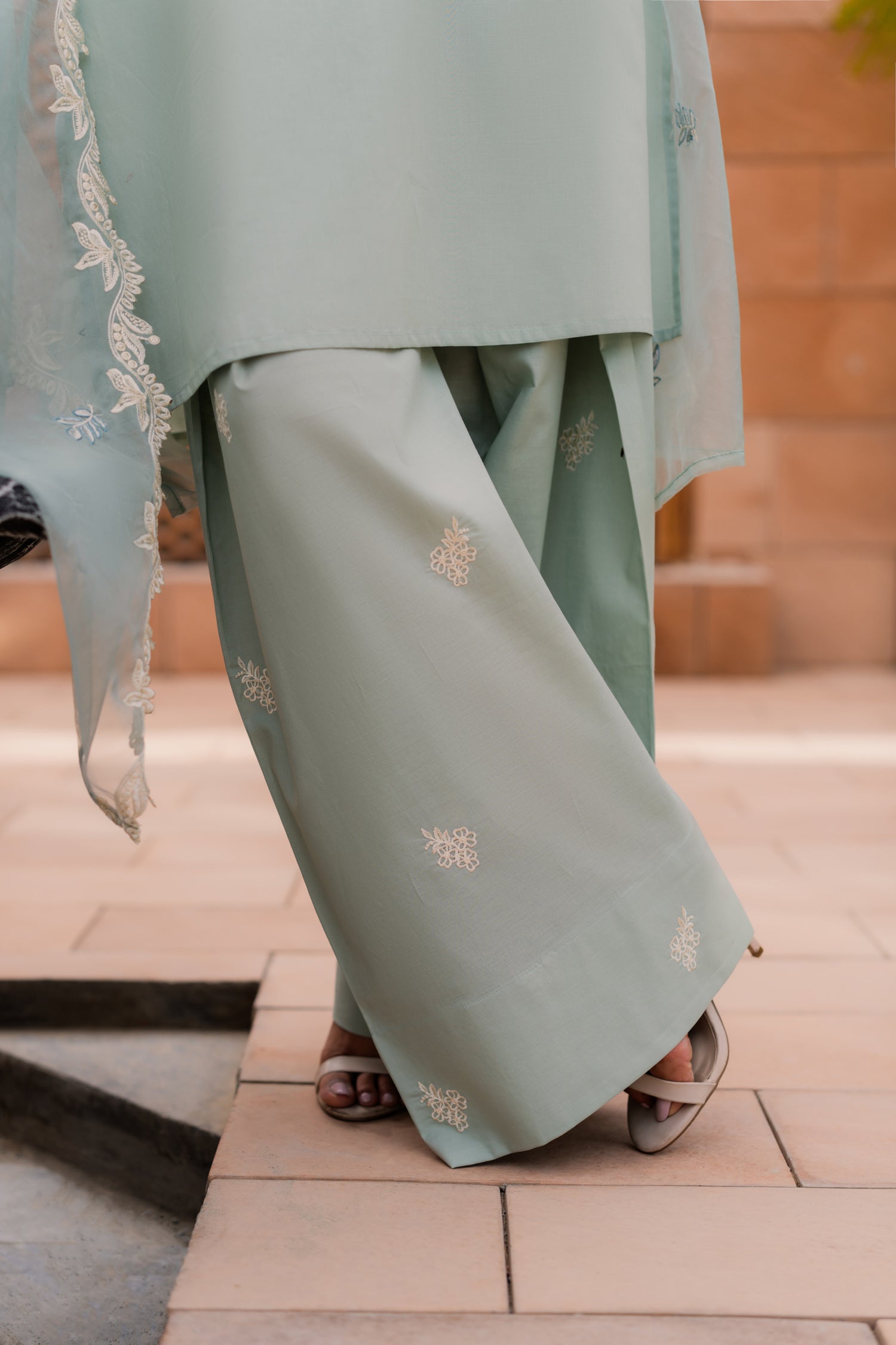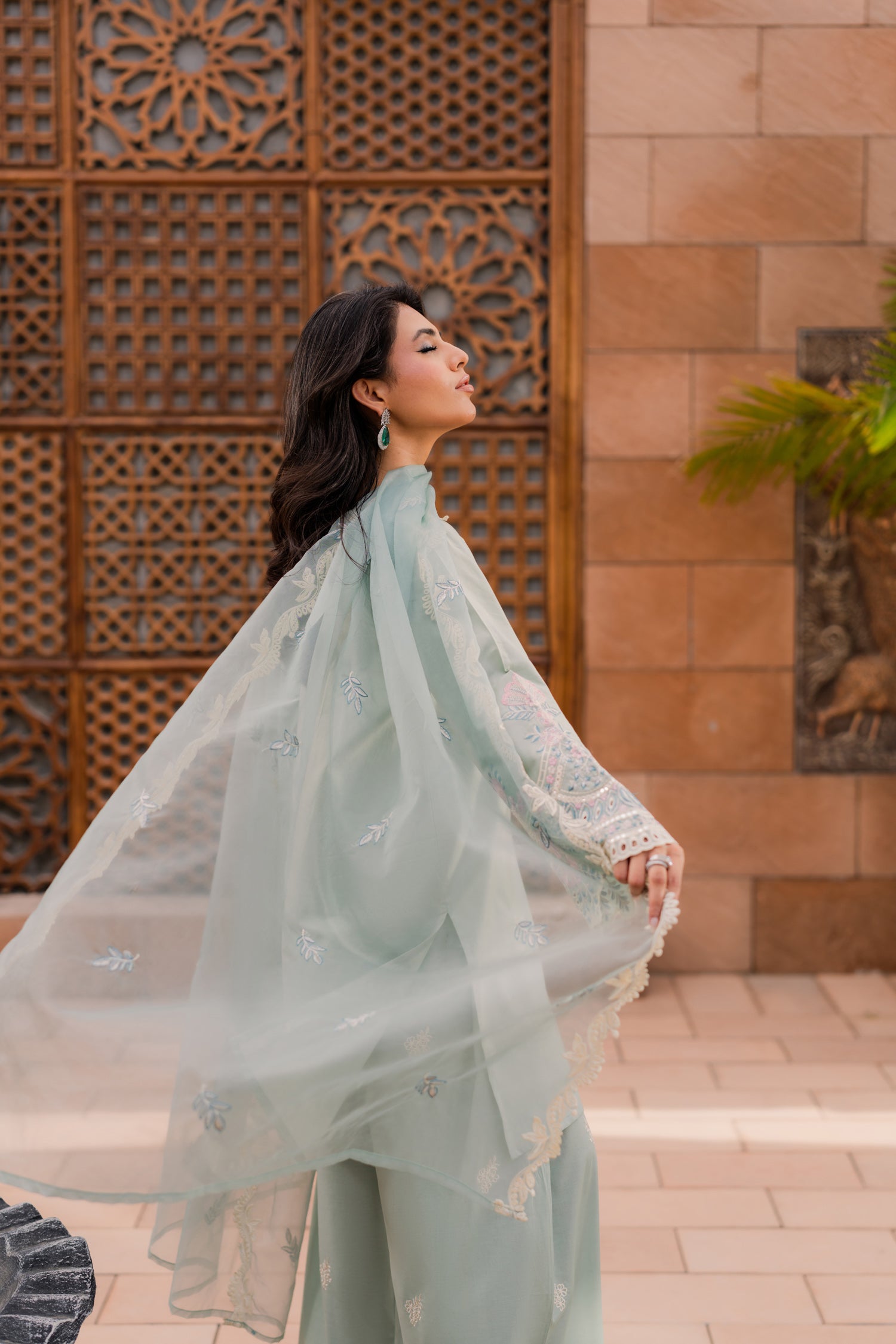 Step into subtle luxury with this light pistachio embroidered suit, a refreshing take on elegance. Delicately adorned with intricate embroidery, it radiates softness and charm. Perfect for daytime celebrations or intimate gatherings, this suit blends serenity with sophistication—crafted for the woman who embraces grace in every thread and hue.