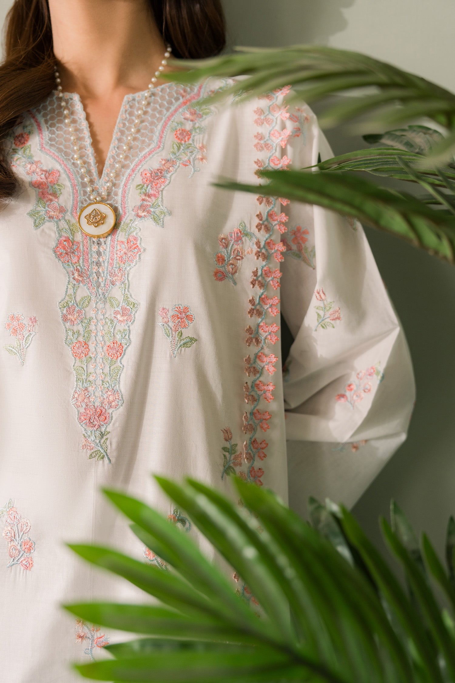 Embroidered lawn shirt -